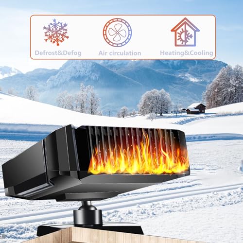 Multifuncional: calefacción y refrigeración: este ventilador de calentador de coche de 12 V tiene una función de calefacción y refrigeración. Está diseñado para eliminar rápidamente las heladas, la niebla y la niebla del parabrisas de tu vehículo. Mejora tu línea de visión para conducir en invierno y proporciona una visión clara mientras estás detrás del volante. También se puede utilizar como ventilador de refrigeración durante todo el año.