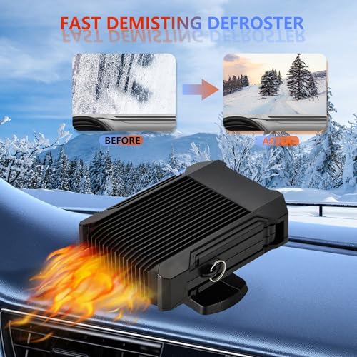 Multifuncional: calefacción y refrigeración: este ventilador de calentador de coche de 12 V tiene una función de calefacción y refrigeración. Está diseñado para eliminar rápidamente las heladas, la niebla y la niebla del parabrisas de tu vehículo. Mejora tu línea de visión para conducir en invierno y proporciona una visión clara mientras estás detrás del volante. También se puede utilizar como ventilador de refrigeración durante todo el año.