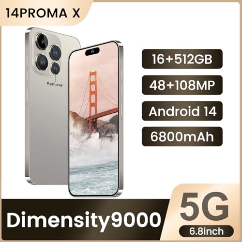 14PROMA X – Teléfono celular desbloqueado, batería de 6800 mAh, pantalla HD de 6.82 pulgadas, teléfonos desbloqueados, 16+512 GB Android 14 con tarjeta de memoria de 128 GB, doble SIM/bloqueo de