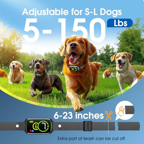 Más ligero que los collares voluminosos, diseñado con nailon 600D duradero y ajustable para cuellos de 6 a 23 pulgadas (5 a 150 libras). Ya sea que necesites un collar de perro para perros pequeños o un collar antiladridos para perros medianos, el ajuste es suave pero seguro. Tu perro disfruta de la comodidad natural, disfrutas de una paz instantánea