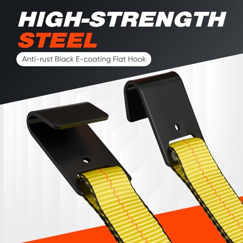 Accesorios de extremo de gancho plano: cada gancho plano es Cr6 sin plomo y a prueba de óxido. Las correas de amarre de rueda de automóvil cuentan con accesorios de extremo de gancho plano para una fijación rápida y segura a la carretilla de remolque, asegurando la rueda firmemente, evitando que la correa única se deslice.