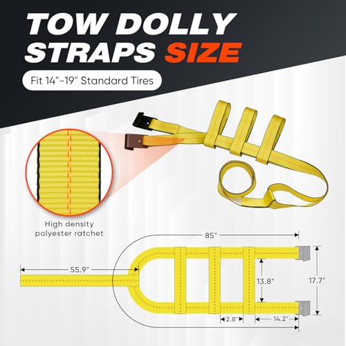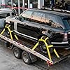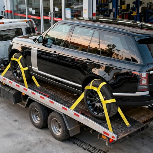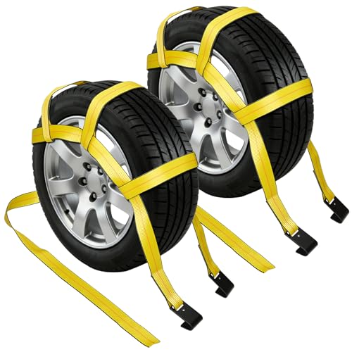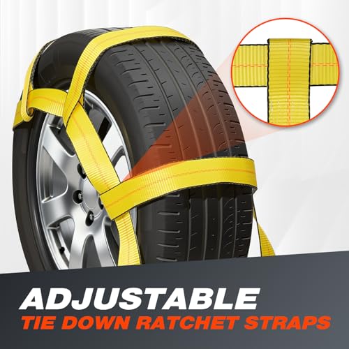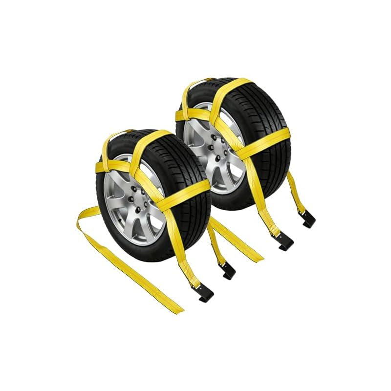 Fácil de usar: deslice la correa del neumático sobre el neumático de su vehículo y fije los dos ganchos planos a la parte trasera de su plataforma de remolque. Asegure los extremos sueltos de los amarres con un trinquete o cabrestante (no incluido). Adecuado para remolques de automóviles, vehículos todo terreno, camiones y vehículos utilitarios
