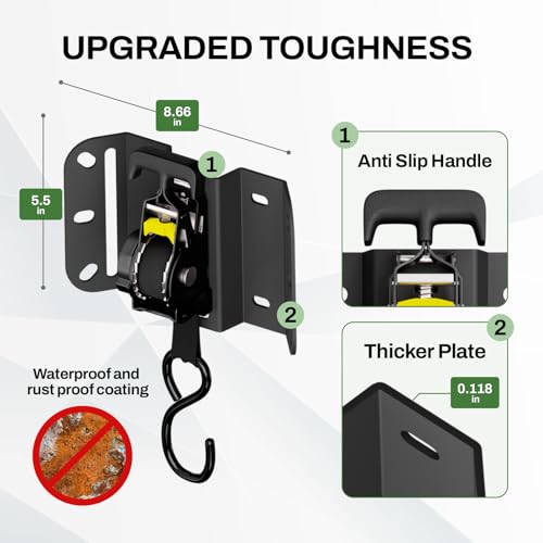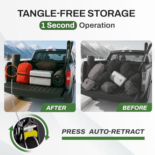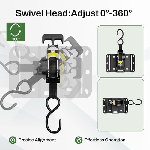 Especificaciones: 2 correas de trinquete retráctiles giratorias para Ford F150 2015-2025, correas de amarre retráctiles automáticas con trinquete giratorio resistentes anclajes de caja de camión para seguridad de carga