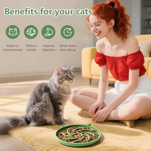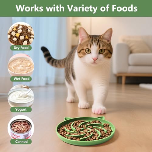 Especificaciones: 2 cuencos de silicona para gatos de alimentación lenta, rompecabezas para gatos, juguetes interactivos, cuenco para gatos de alimentación lenta, adecuado para todos los alimentos secos y húmedos