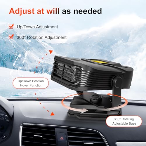 Especificaciones: 2 en 1 12 V 200 W, calentador de parabrisas portátil giratorio de 360°, eliminación rápida de heladas/niebla, diseño enchufable para todos los vehículos, negro/amarillo