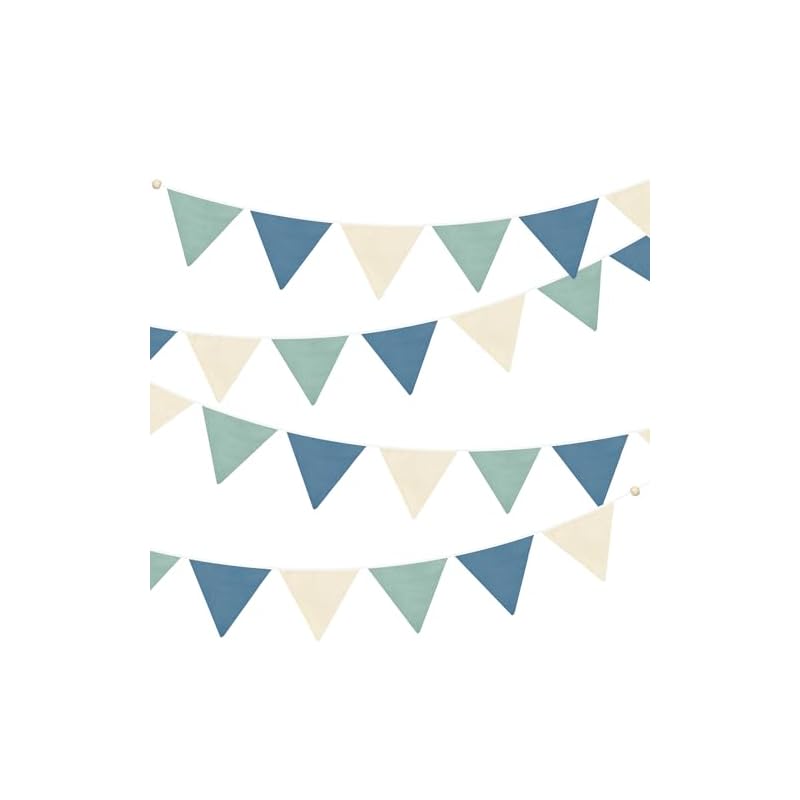¡Bienvenido a nuestra tienda! Este kit de banderines triangulares de tela suave color azul, verde y blanco incluye: