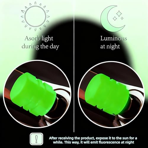 Material premium: nuestras tapas de válvula de neumático están hechas de material ABS de alta calidad y material luminoso de larga duración. Protegerán las válvulas de neumáticos de tu automóvil del desgaste. Brillarán en la noche después de sentarse al sol en un día.