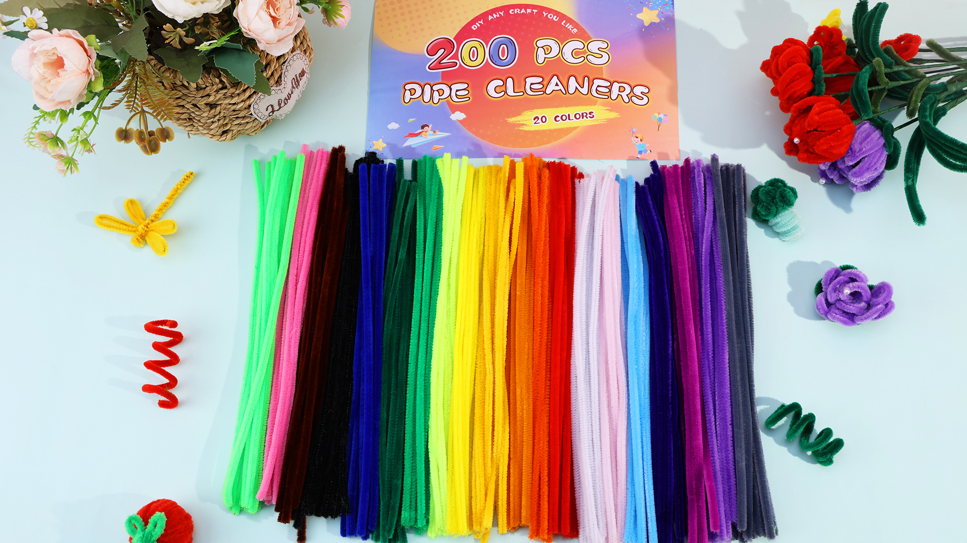 Especificaciones: 200 limpiapipas, 20 colores creativos de tallos de felpilla para manualidades, limpiadores de tuberías peludos a granel para manualidades, limpiador de tuberías de bricolaje para arte y manualidades