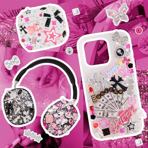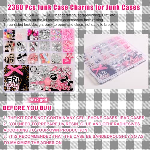 2380 Pcs Junk Phone Case Charms Kit,Charms for Customizing Diy Cases ,With Nail Accessories,Cute Bow,Flatback Pearls,Star,Love, Candy,Letter Beads,Cute Aesthetic Big Decor for Personalization