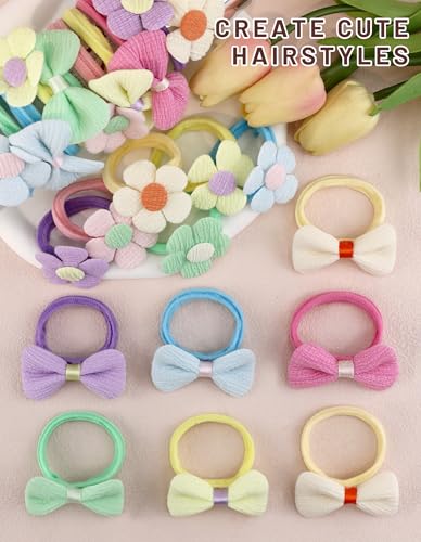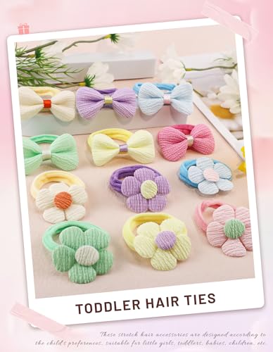 Material suave de entrada calidad: estas bandas para el cabello para niños pequeños están hechas de material suave y sin costuras que es duradero y afable para el cabello emocionable de los niños pequeños. El elástico suave mueve y estira el cabello de tu hijo sin tirar, evitando daños.