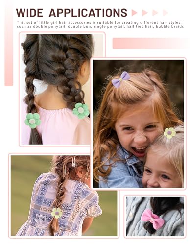 Crea bonitos peinados: nuestros coleteros tienen patrones clásicos de flores y lazos en colores ricos y estilos lindos. Este juego de accesorios para el cabello de niña es justo para crear diferentes estilos de cabello, como cola de caballo doble, moño doble, cola de caballo individual, cabello céfiro atado, trenzas de burbujas.