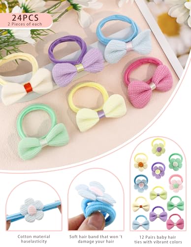 24 ligas elásticas para el cabello para niñas pequeñas, lazos de flores, accesorios para todo tipo de cabello