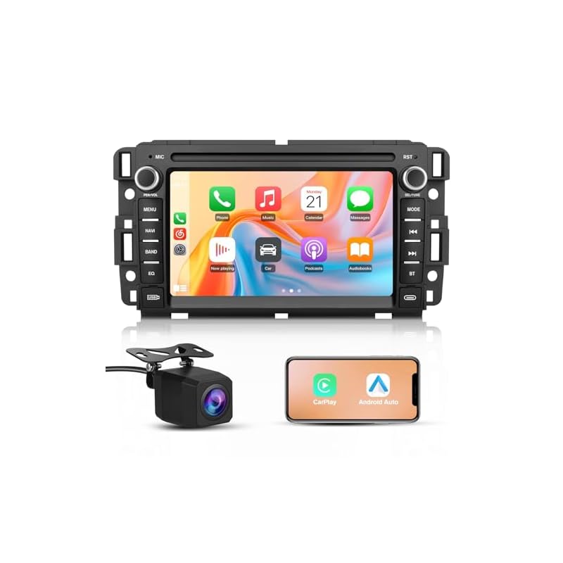 Especificaciones: 2G+64G Radio de coche estéreo para Chevy Silverado GMC Sierra 2007-2013, Android 13 con CarPlay Android Auto Bluetooth navegación GPS 7 pulgadas pantalla táctil unidad principal