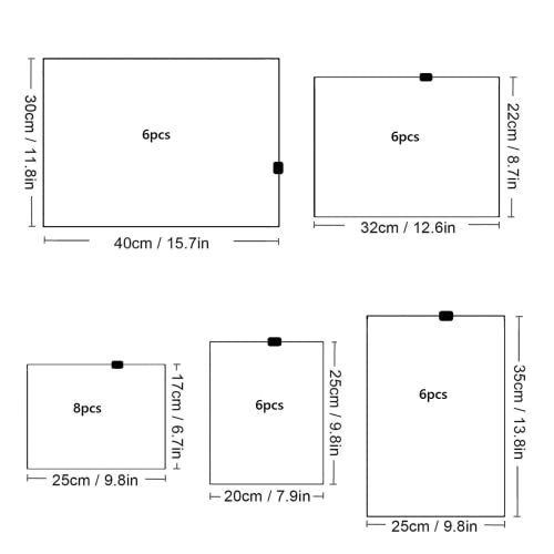 【Varios tamaños】 Paquete de 32 bolsas de almacenamiento con 5 tamaños diferentes, 30 x 40 cm, 32 x 22 cm, 25 x 35 cm, 20 x 25 cm, 25 x 17,cmla clasificación es clara y razonable,puede acomodar diferentes prendas o suministros, puedes encontrar rápidamente lo que quieras.