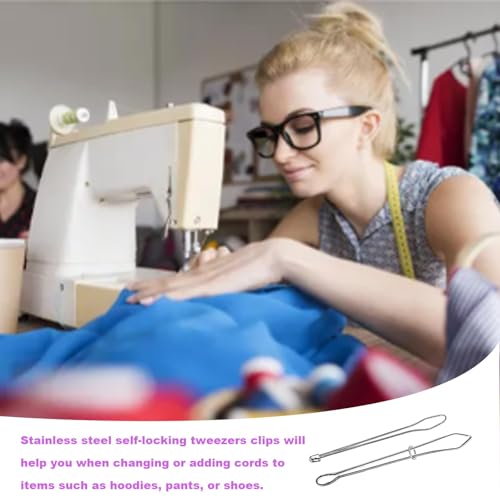 Amplia aplicación: esta pinza de metal se puede utilizar para varios tipos de ropa, como ropa deportiva, pantalones deportivos, suéteres con capucha, abrigos y otras prendas que necesitan cordón, proporcionando comodidad para tu trabajo de enhebrado manual de cordón