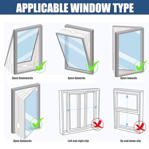 ✨【Instalación Rápida y Fácil】Para la instalación, simplemente pegue la cinta adhesiva suministrada al marco de la ventana, fije el sello de la ventana al marco y la ventana, ¡listo!