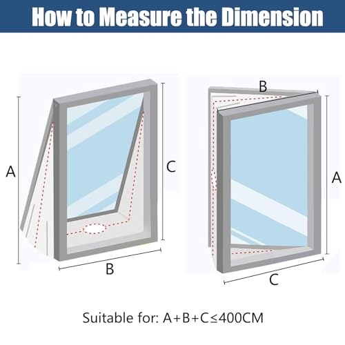 ✨【Tamaño Disponible】Sello de ventana para aire acondicionado para ventanas con una circunferencia de 400cm.Sin embargo, no se puede utilizar en una ventana para la hoja izquierda y derecha o puerta corredera.Por favor, mida la longitud de los cuatro lados de la ventana antes de comprar y elija el tamaño adecuado.Mida los 3 lados del marco de su ventana y súmelos, A+B+C debe ser menor o igual a 400cm.