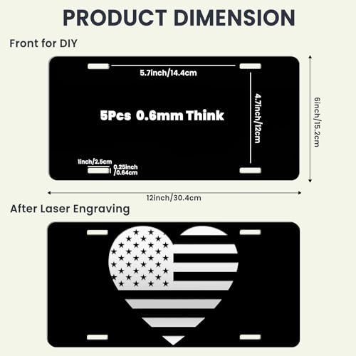 Contenido esencial: los espacios en blanco para matrícula de AceSubli vienen en un juego de 5, cada uno fabricado con el tamaño estándar de Estados Unidos y Canadá de 6 x 12 pulgadas con un grosor de 0.024 in. Imprime fácilmente tus fotos y texto favoritos en estos espacios en blanco de etiquetas de automóvil a través del grabado láser (no para sublimación)