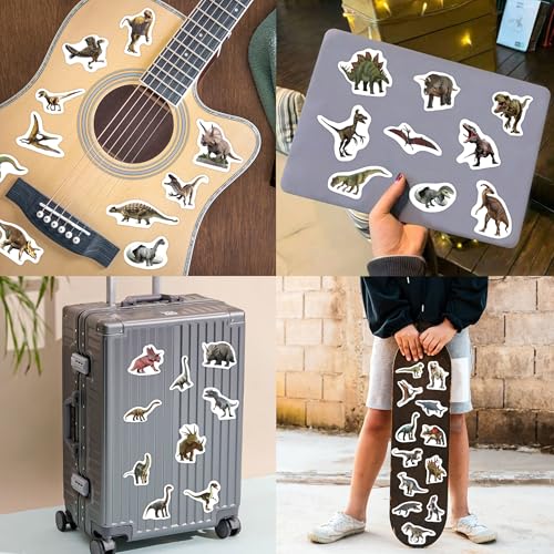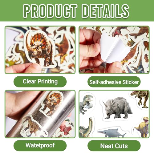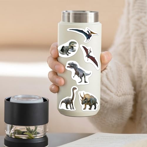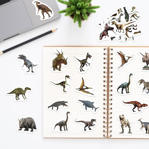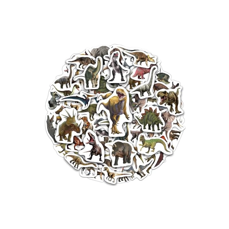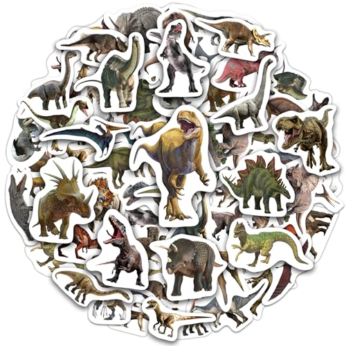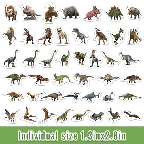 Paquete de calcomanías de dinosaurio: 50 calcomanías únicas en divertidos diseños de dinosaurios como tiranosaurio Rex, triceratops, pterodáctilosaurio, estegosaurio, anquilosaurio, etc., alrededor de 2 a 3 pulgadas cada diseño.