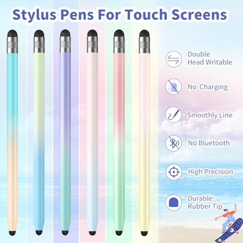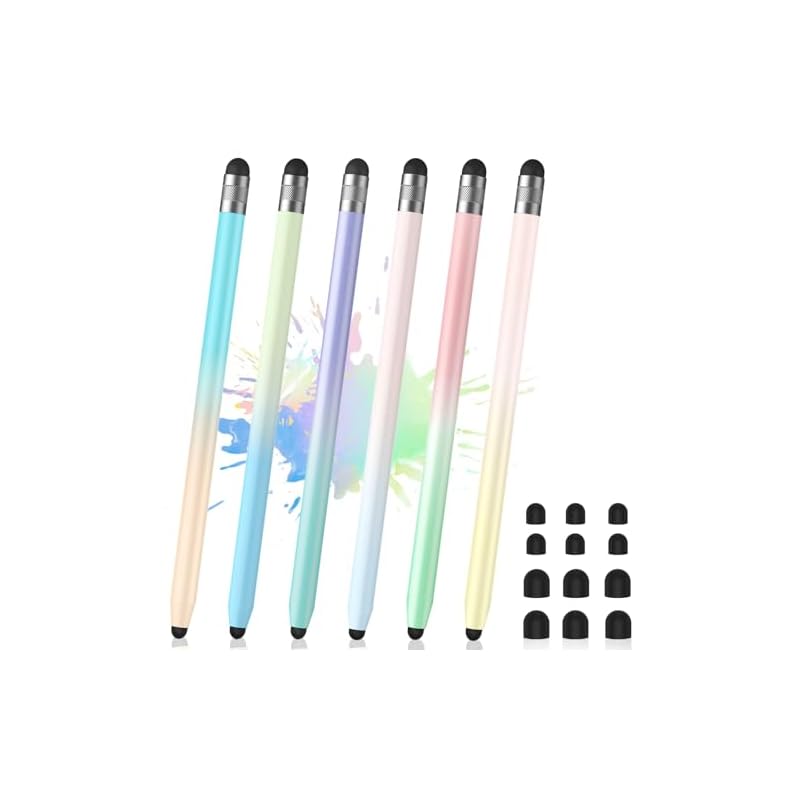 6 lápices capacitivos, lápiz digital para pantalla táctil, lápiz digital 2 en 1 para iPad, alta precisión y sensibilidad, doble punta de goma, compatible con tabletas iPad/iPhone/Android y pantalla