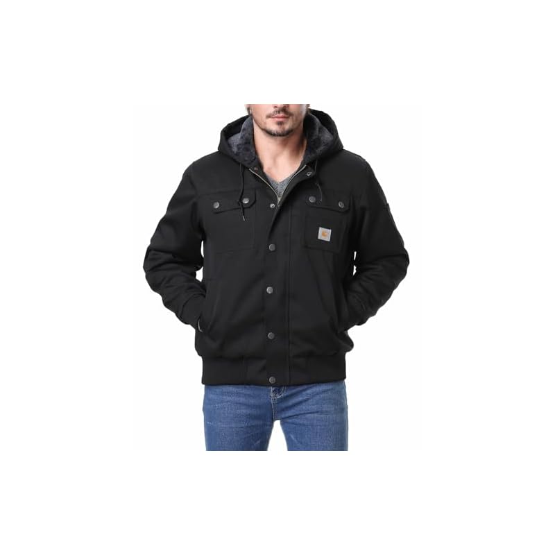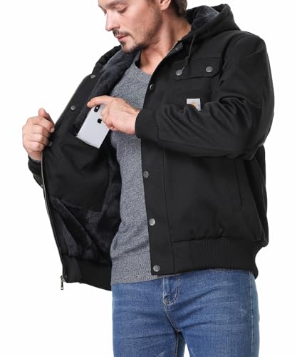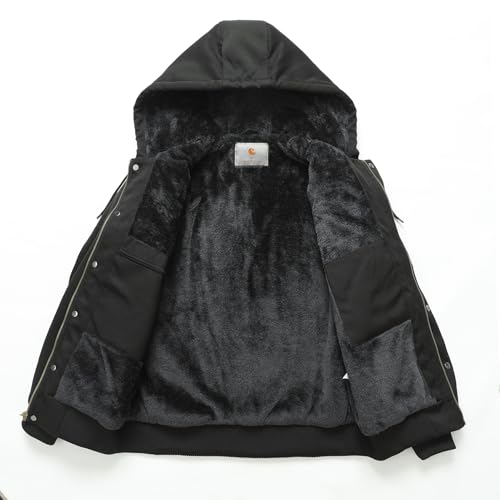 Abrigo de trabajo relajado para hombre, con forro polar, impermeable, para invierno, con capucha y múltiples bolsillos