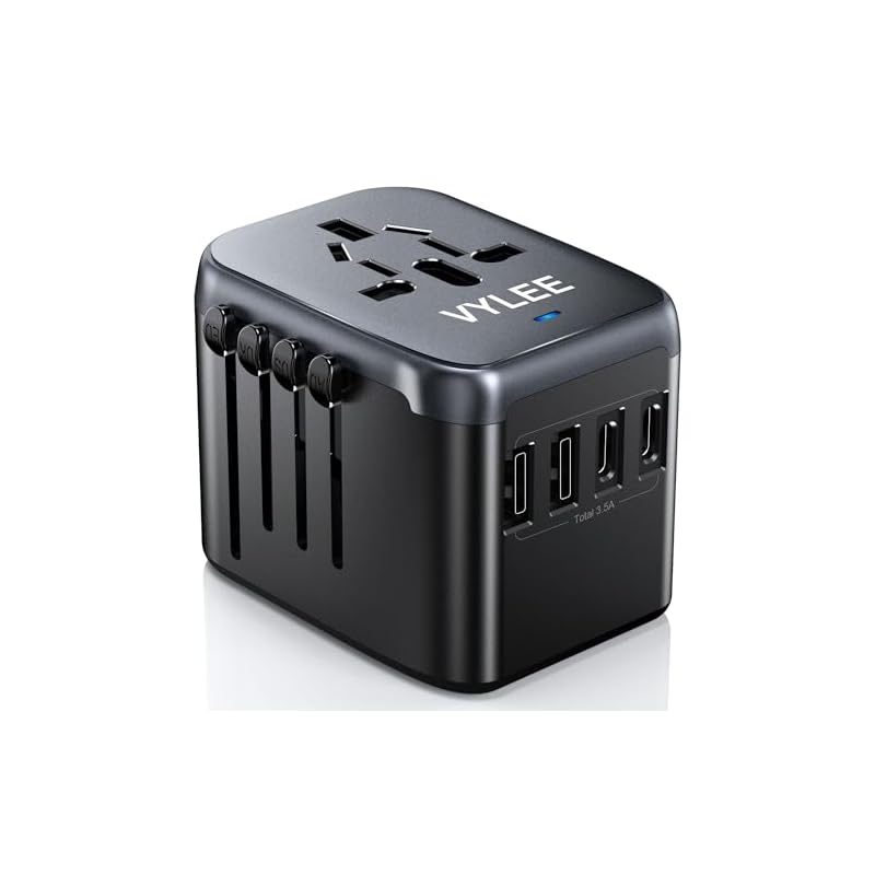Especificaciones: Adaptador de viaje universal, adaptador de corriente internacional 5 en 1, cargador de pared 3.5A 2xUSB-A y 2 USB C, enchufe esencial de viaje mundial para Europa, EE. UU., Reino Unido, AUS