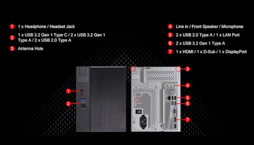 El DeskMeet B660 cuenta con orificios de ventilación en la parte superior, izquierda e inferior de la caja para garantizar la máxima disipación de calor y un flujo de aire constante. DeskMeet B660 ofrece hasta 5 lugares de almacenamiento, incluyendo 3 puertos SATA de 6 GB y 2 ranuras Hyper M.2 compatibles con el estándar PCI Express 4.0, para acelerar el tiempo de carga para todas sus aplicaciones favoritas. 1 UBS3.2 Gen1 Type-C, 4 USB 3.2 Gen1 Type-A, 4 puertos USB 2.0.