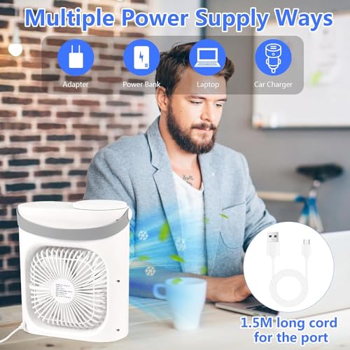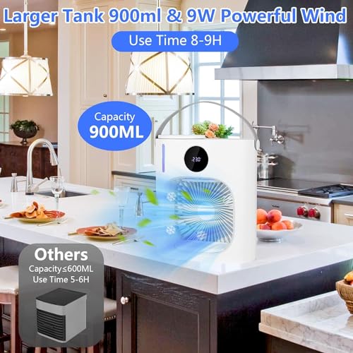 Acondicionador de aire portátil ventilador,900ml Evaporativo mini aire acondicionado,3 velocidades de aire acondicionado personal,Personal Air Cooler con humidificador.