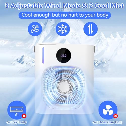 【Ventilador de sobremesa eficiente y fácil de usar】Con un motor de alto rendimiento, nuestro ventilador de sobremesa puede enfriar la temperatura ambiente a 55-68 °F. Basta con añadir agua o hielo en el tanque de agua, a continuación, toque la pantalla para sentirse fresco y cómodo breeze.can ser operado por los ancianos y los niños.