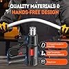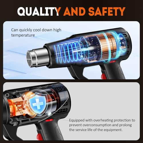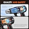 [2000 W Potente pistola de aire caliente] Potente motor 2000 W garantiza una duración de uso de la pistola de aire caliente de más de 800 horas. La estructura central con doble elemento calefactor permite que la pistola de aire caliente alcance rápidamente la temperatura de trabajo y mantenga un calor estable, mejorando así la eficiencia del trabajo. La función de protección contra sobrecargas de la pistola de aire caliente evita averías mecánicas debidas al sobrecalentamiento durante el trabajo