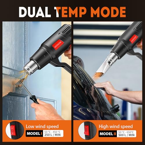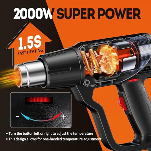 AIUNAOM Pistola de Aire Caliente 2000W Pistola de Calor 50℃~650℃ Control de Temperatura sin Niveles + 2 Velocidades de Aire Calentamiento Rápido Para Soldar, Descongelar y Eliminación de Pintura