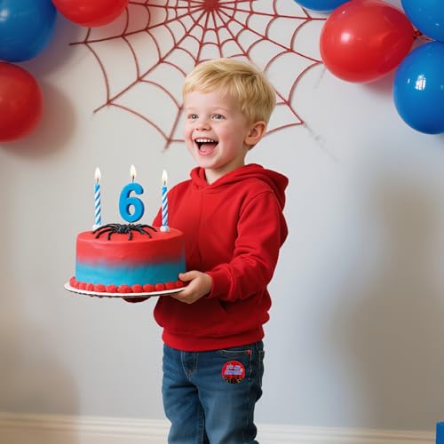 Especificaciones: Alfiler de 2.3 pulgadas con texto en inglés «It’s My Birthday», diseño de telaraña de feliz cumpleaños, botón redondo rojo y azul para mujeres, hombres, niños, niñas, celebraciones temáticas