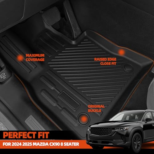 Alfombrillas para todo tipo de clima para Mazda CX90 2024 2025 de 8 plazas con 2ª fila de asiento de banco con respaldo de tercera fila para Mazda CX-90, accesorios para todas las estaciones