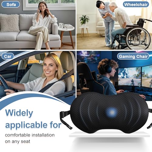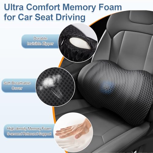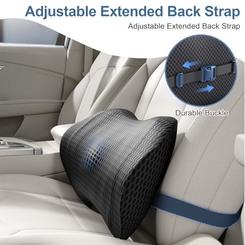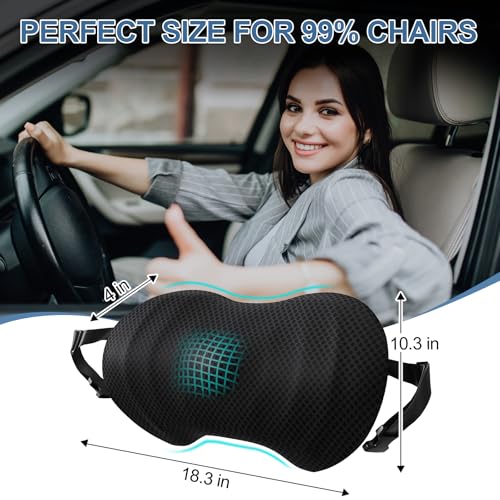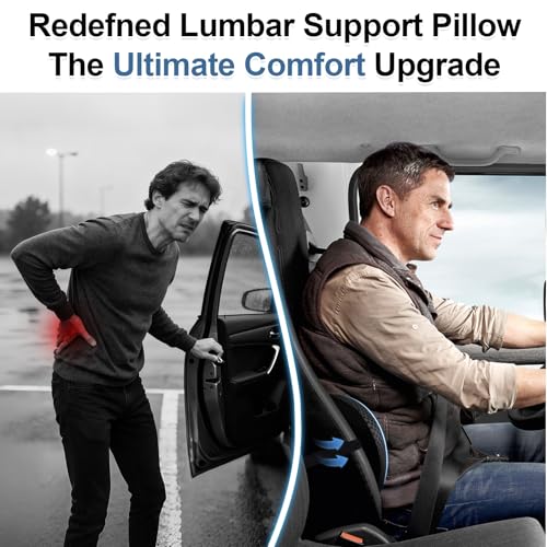 Comodidad superior: este soporte lumbar para automóvil cuenta con espuma viscoelástica de alta densidad, ergonómicamente diseñada para ofrecer apoyo y comodidad duradera. Reduce significativamente la presión en la parte inferior de la espalda y la columna vertebral, aliviando la fatiga de sentarse o conducir prolongadamente