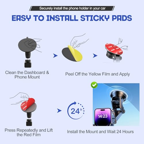 Excelente resistencia a la intemperie: fabricadas con adhesión premium especialmente procesada, nuestras almohadillas adhesivas están diseñadas para durar. El adhesivo resistente y resistente al calor resiste el calor alto sin derretirse y el frío severo sin volverse frágil, por lo que es perfecto para su uso durante todo el año en cualquier clima, asegurando una sujeción fiable de manos libres para cintas de video o navegación.