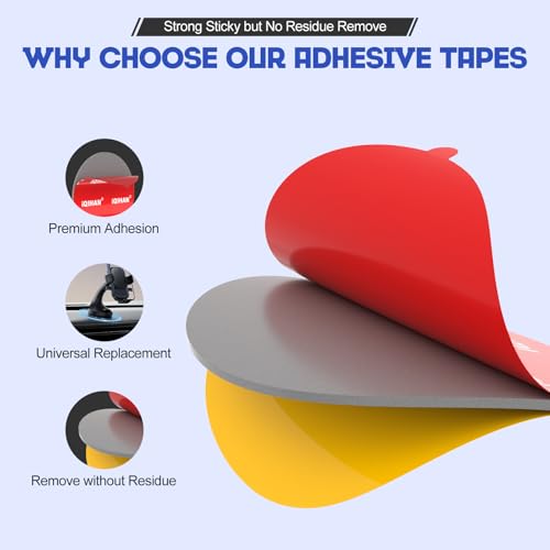 Adhesión superior en varias superficies: nuestra cinta adhesiva ofrece un fuerte agarre y una adherencia firme antideslizante. Para maximizar su resistencia, este juego de reemplazo adhesivo viene con un kit de limpieza para limpiar ambas superficies antes de pegar, ya sea la base del soporte de tu teléfono, ventosa, el tablero de tu automóvil, parabrisas o el dispositivo en sí. Perfecto para plástico, silicona, goma, metal y la mayoría de superficies planas de salpicadero, manteniendo tu dispositivo montado de forma segura incluso en las carreteras más accidentadas.