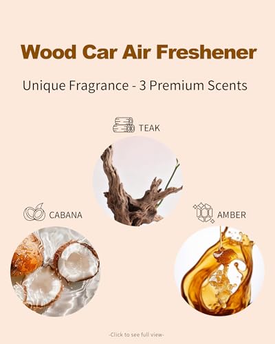 Aromas exclusivos de larga duración: nuestro ambientador de coche elige entre las notas cálidas y amaderadas de Cabana trae un escape tropical con coco cremoso y bergamota picante. La teca ofrece una mezcla cálida y amaderada de ámbar y cedro. El ámbar proporciona un aura calmante con lavanda y salvia. Tres opciones para elevar instantáneamente el ambiente de tu cabina, experimentar fragancias hechas por diseñadores, transformando la conducción diaria en un viaje que despierta los sentidos.