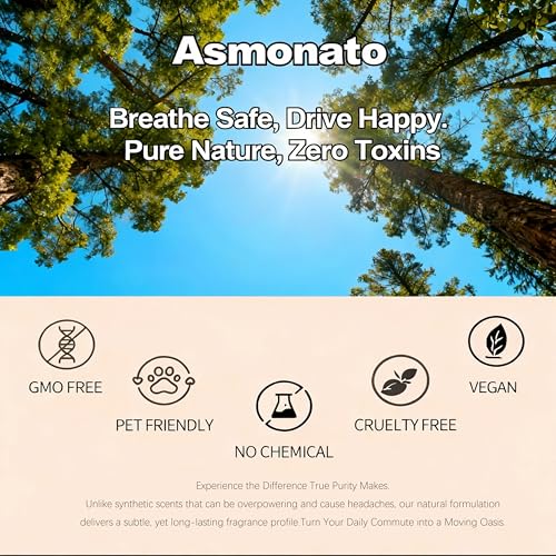 Ambientador de coche de madera prémium: el ambientador de madera Asmonato utiliza madera sostenible y aceites esenciales naturales para ofrecer una larga duración, di adiós a los productos químicos agresivos y olores desagradables. Aroma premium mientras neutraliza eficazmente los malos olores para un ambiente de cabina más saludable, ofreciendo una experiencia de conducción sin igual.