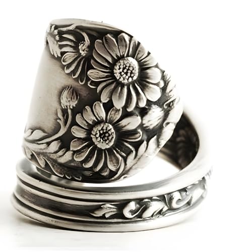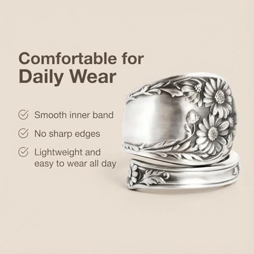 Especificaciones: Anillos ajustables con cuchara de girasol, promesa, boda, compromiso, declaración de compromiso, bohemio, vintage, anillo abierto para dedos, bandas extensibles para mujeres y hombres