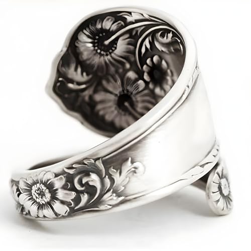 Anillos ajustables con cuchara de girasol, promesa, boda, compromiso, declaración de compromiso, bohemio, vintage, anillo abierto para dedos, bandas extensibles para mujeres y hombres