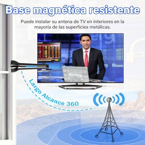 【Base magnética para una fácil instalación】Nuestra antena de TV viene con una fuerte base magnética para una fácil instalación. Se puede colocar en la mayoría de las superficies metálicas, como gabinetes de TV, en la parte posterior del televisor, cerca de una ventana o simplemente colocarlo en un gabinete. Utiliza nuestra práctica y eficaz antena de TV TDT para obtener señales de TV en minutos y empezar a disfrutar de audio y vídeo de forma inmediata.