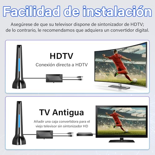 Especificaciones: Antena de TV, Antena de TV para Smart TV, Poderoso Antena HDTV Interior Exterior con Amplificador, para Canales Locales Gratis 4K 1080P DTMB DVB-T2 DVB-T TDT DTMB VHF UHF