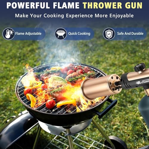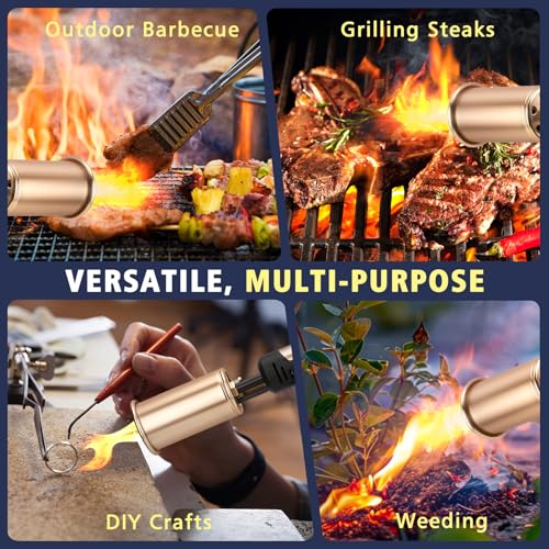 Pistola de antorcha multifuncional: nuestro potente cabezal de antorcha de propano tiene una amplia gama de aplicaciones, incluyendo filetes a la parrilla, hacer postres de caramelo, barbacoas al aire libre, hornear pan, encender parrillas de carbón, fogatas de camping, chimeneas de iluminación, soldadura y varios proyectos de manualidades.