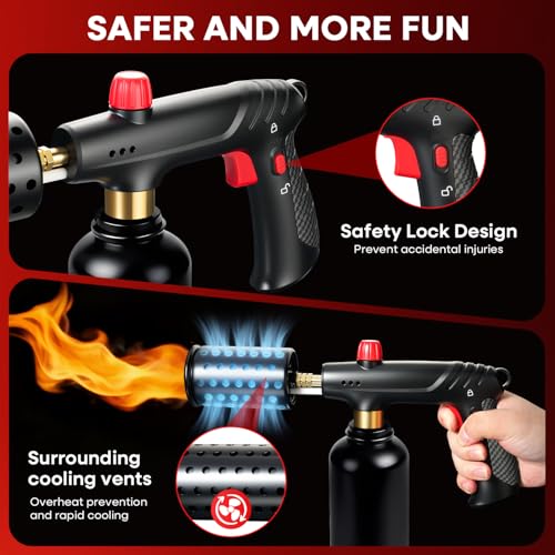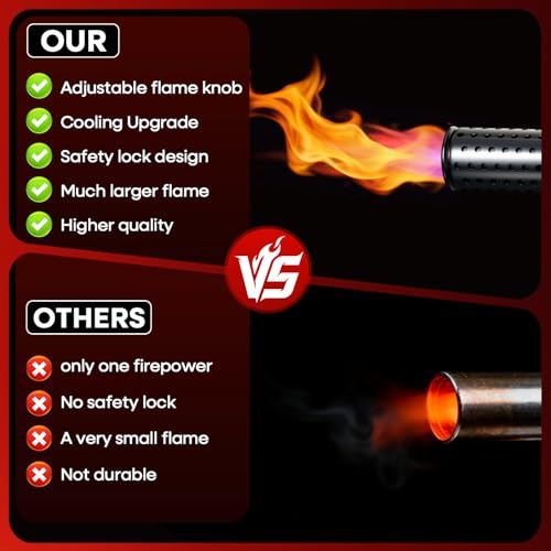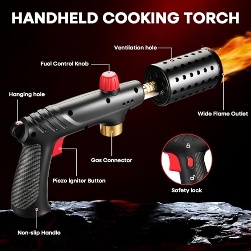 Uso versátil: esta potente antorcha es increíblemente versátil, se maneja fácilmente con una mano para sellar filetes, caramelizar postres, asar al aire libre, hornear pan, encender carbón, fogatas y más.