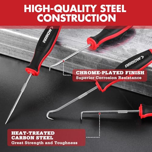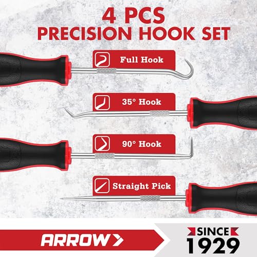 ARROW – Juego de 4 piezas de ganchos y púas de precisión con bolsa, juego de herramientas de mini púa para mecánico automotriz, herramienta de extracción de juntas tóricas, sello de aceite, removedor