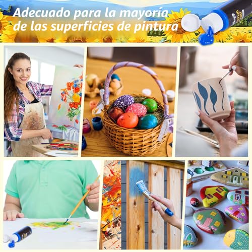 Amplia variedad de usos: el juego de pintura acrílica es adecuado para pintar en la mayoría de las superficies como lienzos, tela, madera, cerámica, piedra, metal, plástico, yeso, etc. Puedes hacer tu propio arte en lienzo, álbumes de recortes, manualidades, decoraciones de Navidad, maquillaje de Halloween, huevo de Pascua y más con este juego de pintura acrílica.