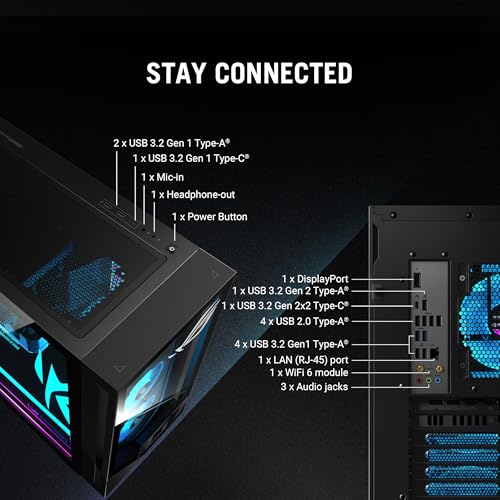 El escritorio para juegos G700 combina un diseño intrépido, potencia de próxima generación y conectividad avanzada en un paquete llamativo y versátil. Su chasis de rótulo de doble vidrio notificación la audaz identidad ROG con el icónico logotipo ROG Slash y Fearless Eye, complementado con iluminación RGB personalizable con Aura Sync. Alimentado por el procesador Intel Core Ultra 7 265KF de próxima generación y la GPU NVIDIA RTX 5070, el G700 está equipado con 32 GB de RAM DDR5 y 1 TB de acopio PCIe Gen 4 de alta precipitación para un rendimiento inigualable. Un sistema de flujo de postura de cuatro ventiladores, un enfriador líquido AIO de 9.449 in y filtros de polvo garantizan una gestión térmica óptima y la longevidad del sistema. Construido para ofrecer fiabilidad y flexibilidad, el espacioso chasis de 58L admite GPU de triple ranura y una fuente de alimentación de 850 W de tamaño rotundo, mientras que el diseño sin herramientas permite actualizaciones y mantenimiento sin esfuerzo. Manténgase conectado con Ethernet de 2.5Gbps, WiFi 6 y puertos versátiles de alta precipitación, mientras que Dolby Atmos ofrece paisajes sonoros multidimensionales para una experiencia de audio envolvente. El G700 es la mejor opción para jugadores y creadores que buscan un escritorio de penetrante rendimiento Ducho para el futuro.