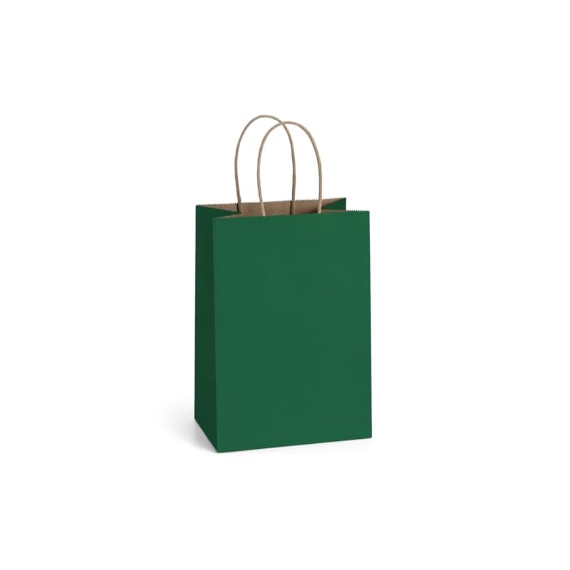 Especificaciones: BagDream Bolsas de papel de regalo verde bosque de 5.25x3x8 con asas, paquete de 100 unidades