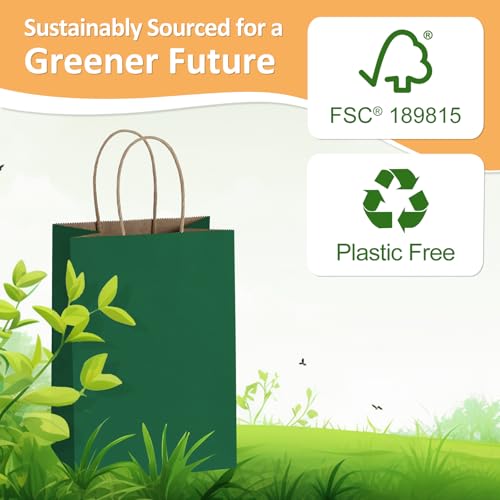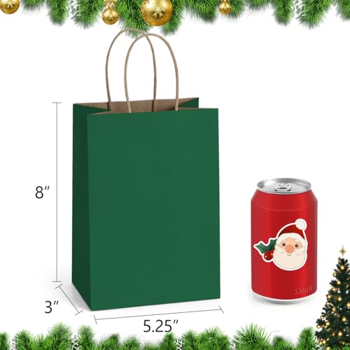 BagDream Bolsas de papel de regalo verde bosque de 5.25x3x8 con asas, paquete de 100 unidades