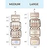 Gran capacidad. Enrollado: 12.6 x 9.1 x 4.3 pulgadas. Abierto: 12.6 x 33.5; 4 compartimentos separados con 1 bolsa de cosméticos aprobada por la Administración de Seguridad en el Transporte (TSA).